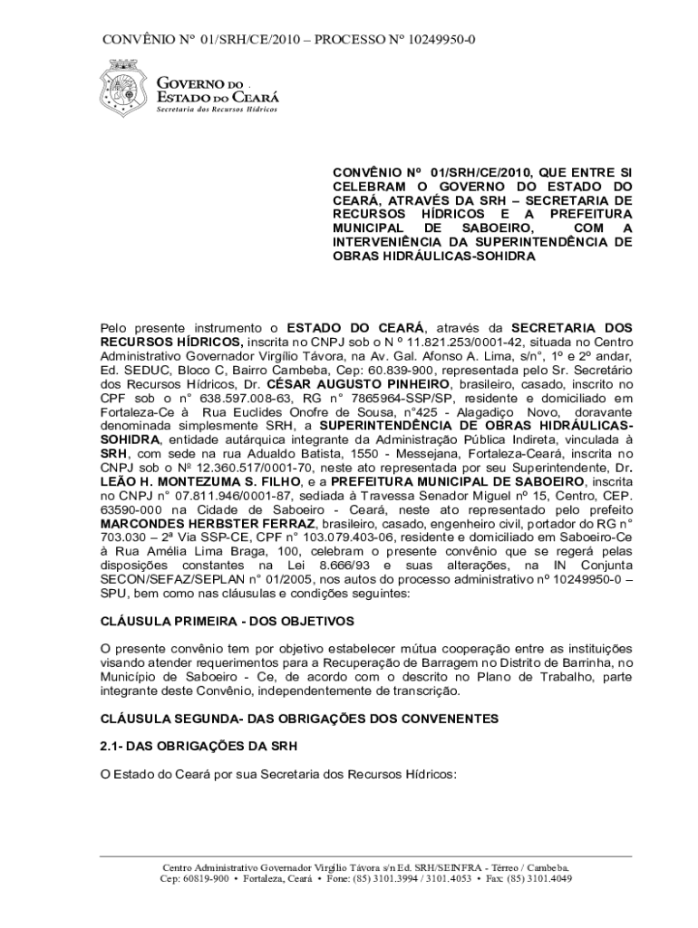 CONNIE N 01/SRC/CE/2010 PROCESS N 102499500CONVNIO N 01/SRC/CE/2010, QUE ENTIRE SI
