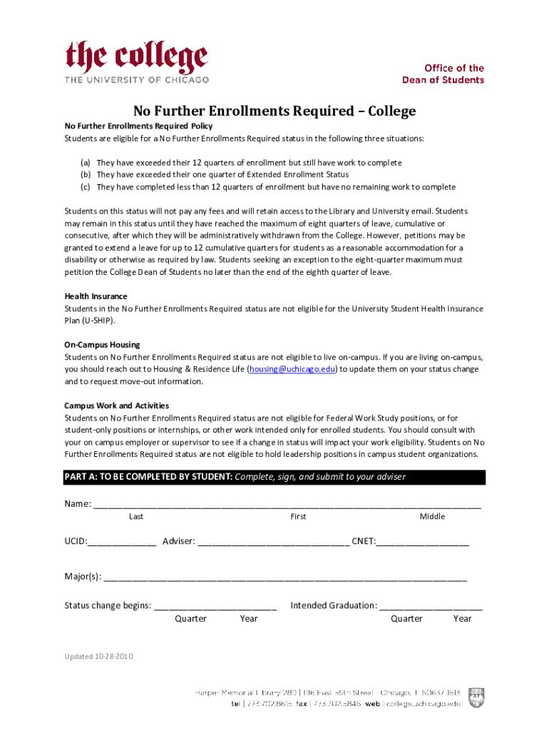 No Further Enrollments Required College No Further Enrollments Required Policy Students are eligible for a No Further Enrollments Required status in the following three situations: (a) They have exceeded