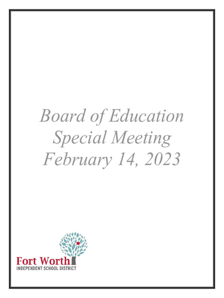 Board of Education Special Meeting February 14, 2023Special MeetingNotice is hereby given that on Tuesday, February 14, 2023, the Board of Education of the Fort Worth Independent School District will