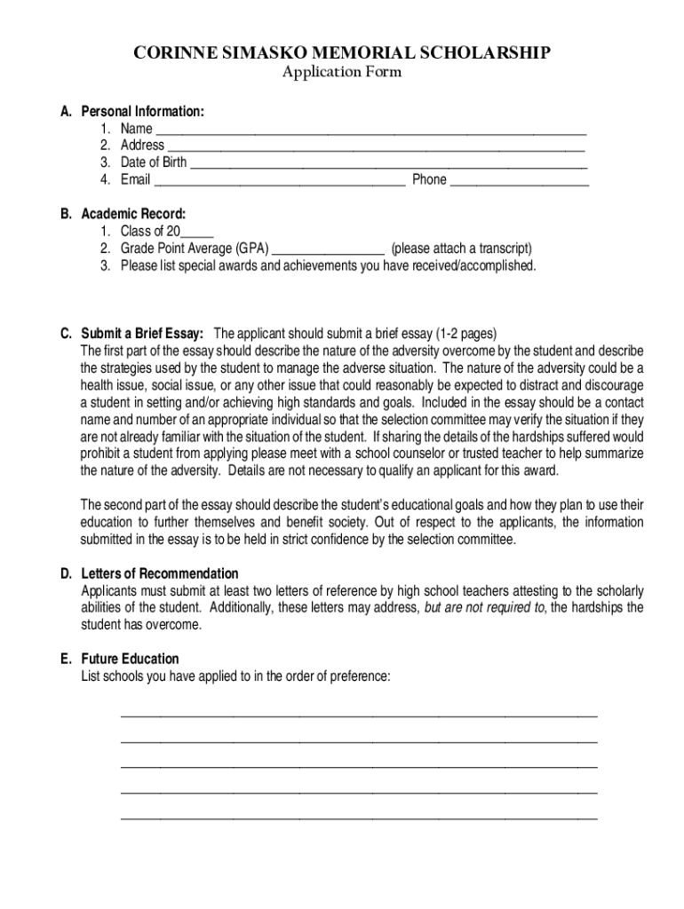 CORINNE MASK MEMORIAL SCHOLARSHIP Announcement & Application PULLMAN EDUCATION FOUNDATIONThisisanannualscholarshipgiveninmemoryofCorinneSimaskowhowastakenbycancerinhersenior yearatPullmanHighSchoolinthefallof2007.