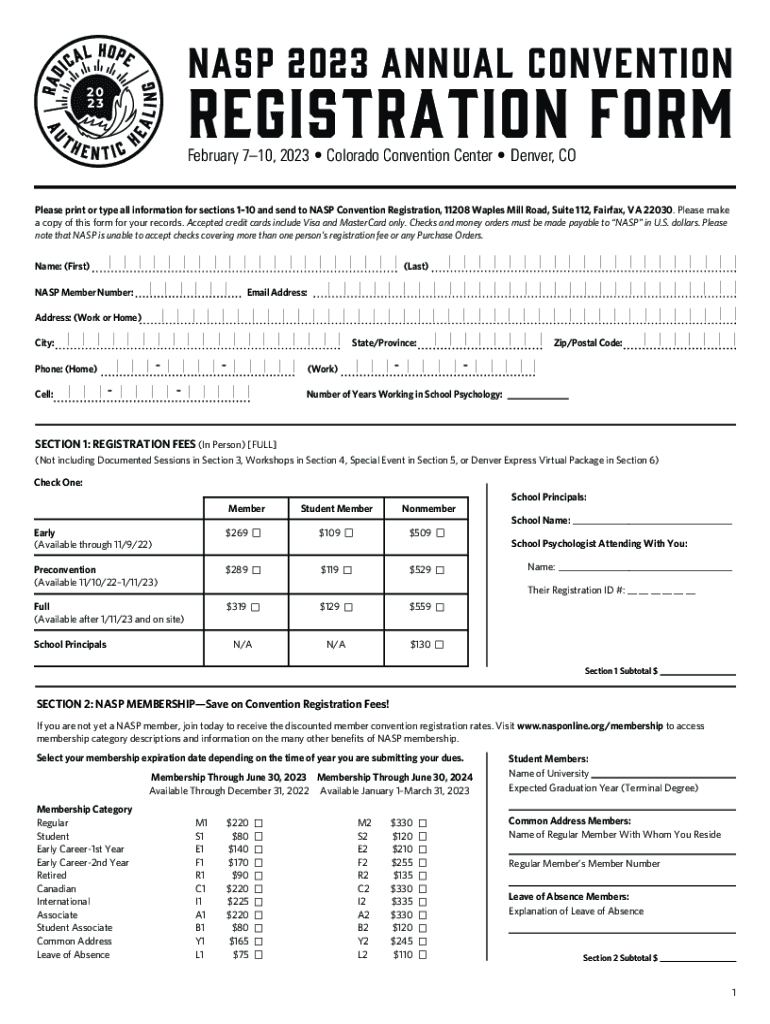 NASA 2023 ANNUAL CONVENTIONREGISTRATION FORM February 710, 2023 Colorado Convention Center Denver, COP lease print or type all information for sections 110 and send to NASA Convention Registration,