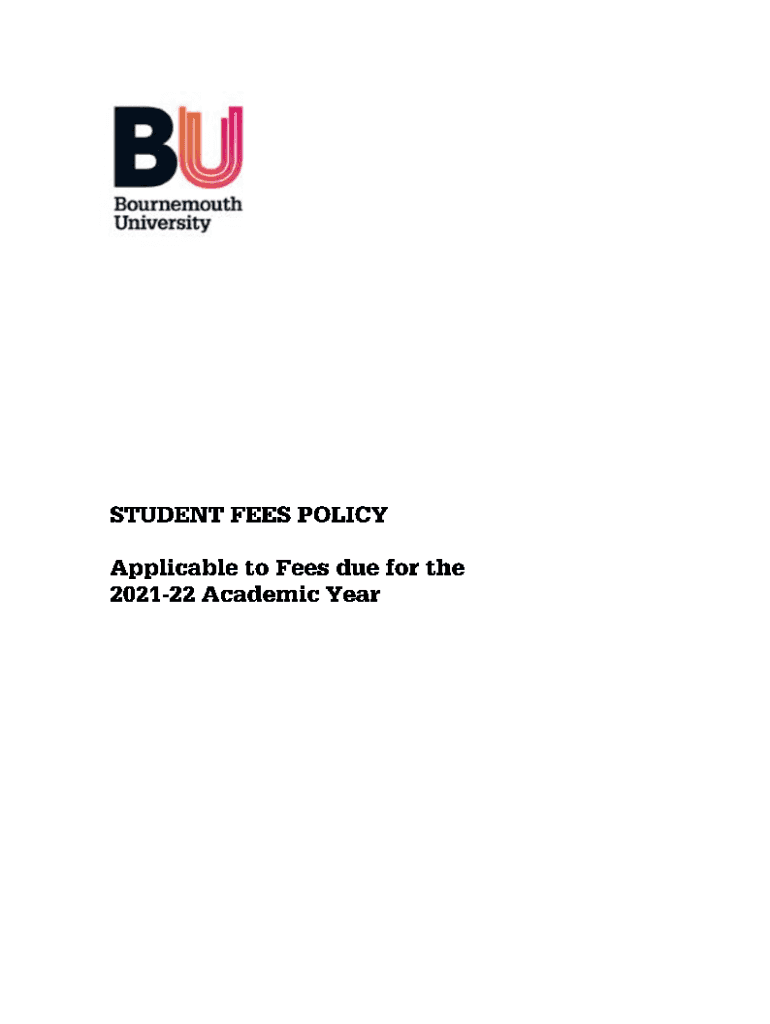 1.1Bournemouth University (BU) is committed to a fair and transparent policy in respect of charges made to a student of Bournemouth University (whether they study at Bournemouth University or a Partner