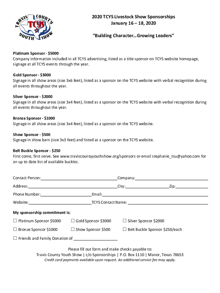 2020 TOYS Livestock Show Sponsorships January 16 18, 2020 Building CharacterGrowing Leaders Platinum Sponsor $5000 Company information included in all TOYS advertising, listed as a title sponsor on