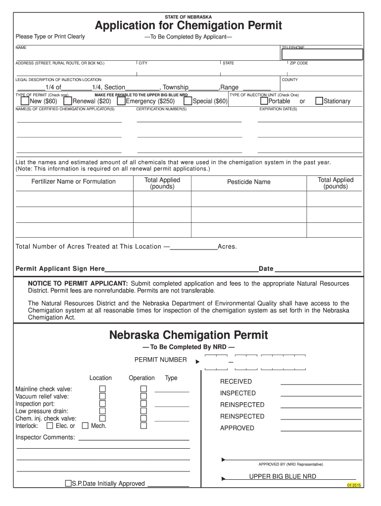 Get the free Application for Chemigation Permit Nebraska Chemigation Permit - upperbigblue