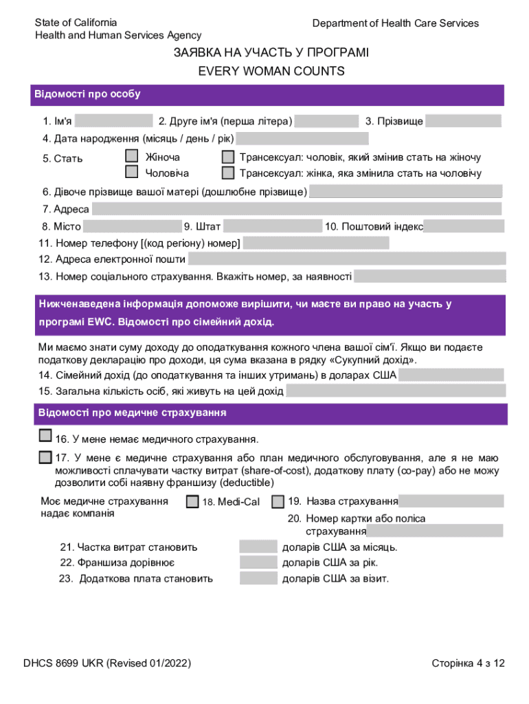 Get the free Every Woman Counts Program Recipient Application (Ukrainian) (dhcs8699ukrewcrecipien...