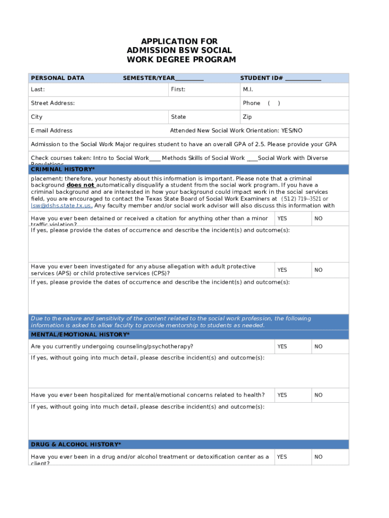 Frequently asked questions about BSW admission and application - School of Health Professions template