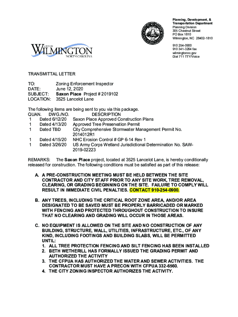 Planning, Development, & Transportation Department Planning Division 305 Chestnut Street PO Box 1810 Wilmington, NC 284021810 910 2540900 910 3413264 fax Wilmington.gov Dial 711 TTY/VoiceTRANSMITTAL