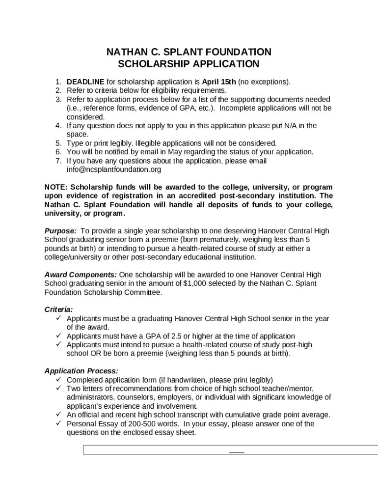 Instructions for the form Ncsf-scholarship-application - NATHAN C. SPLANT ...