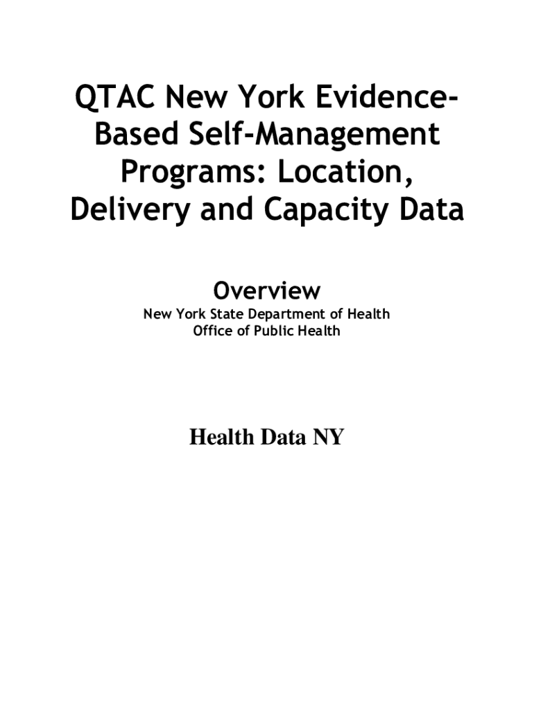 TAC New York EvidenceBased Self-management Programs: Location, Delivery and Capacity Data Overview New York State Department of Health Office of Public HealthHealth Data NYEvidencebased Self-management