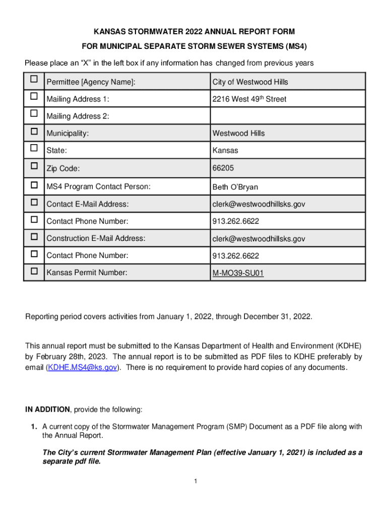 Get the free kansas stormwater 2022 annual report form
