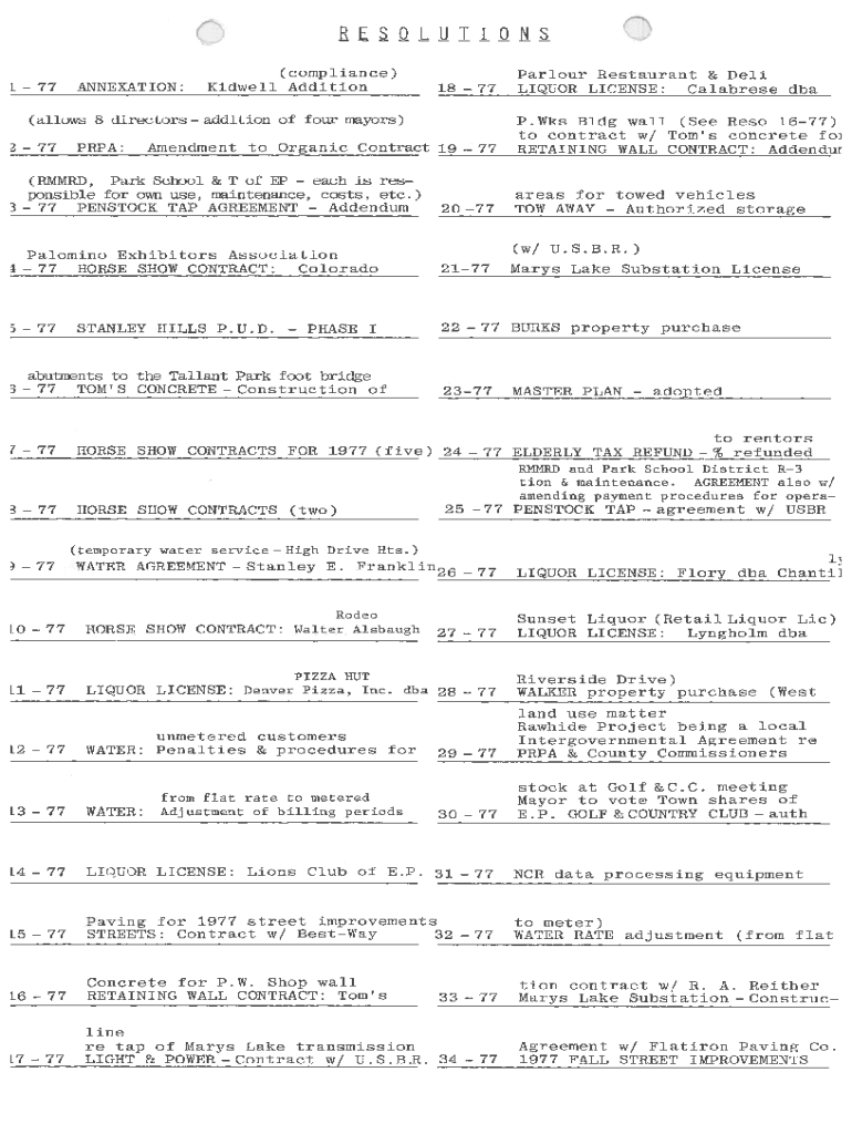 C 177(allows 8 directors 77(compliance) KidwellAdditionANNEXATION:PRA:0RESOLUTI ONS 1877addition of four mayors)Amendment to Organic Contract 1977each is res (RMM RD, Park School & T of EP possible