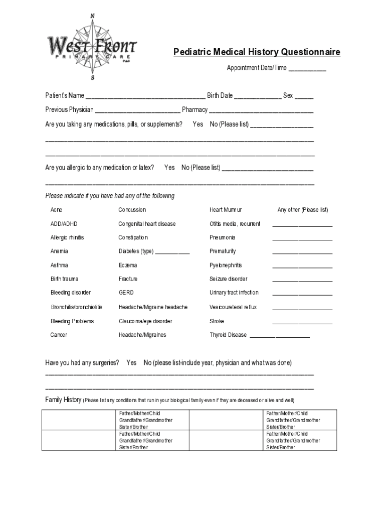 Get the free pedatric Medical History QuestionnaireFO12052015