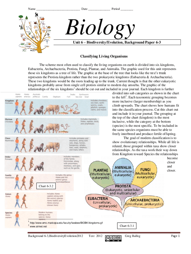 Name ___ Date ___ Period ___Biology Unit 6 Biodiversity/Evolution, Background Paper 63Classifying Living Organisms The scheme most often used to classify the living organisms on earth is divided into