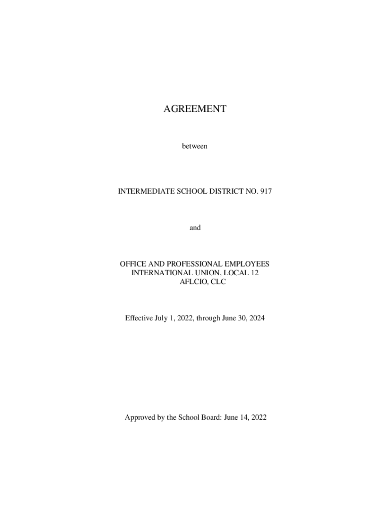 AGREEMENTbetweenINTERMEDIATE SCHOOL DISTRICT NO. 917andOFFICE AND PROFESSIONAL EMPLOYEES INTERNATIONAL UNION, LOCAL 12 AFL CIO, Effective July 1, 2022, through June 30, 2024Approved by the School