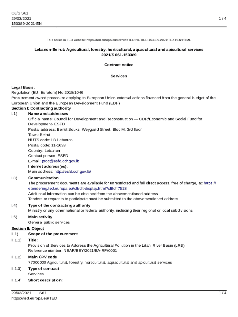 Get the free Services - 153398-2021 - TED Tenders Electronic ... - TED EU - esfd cdr gov