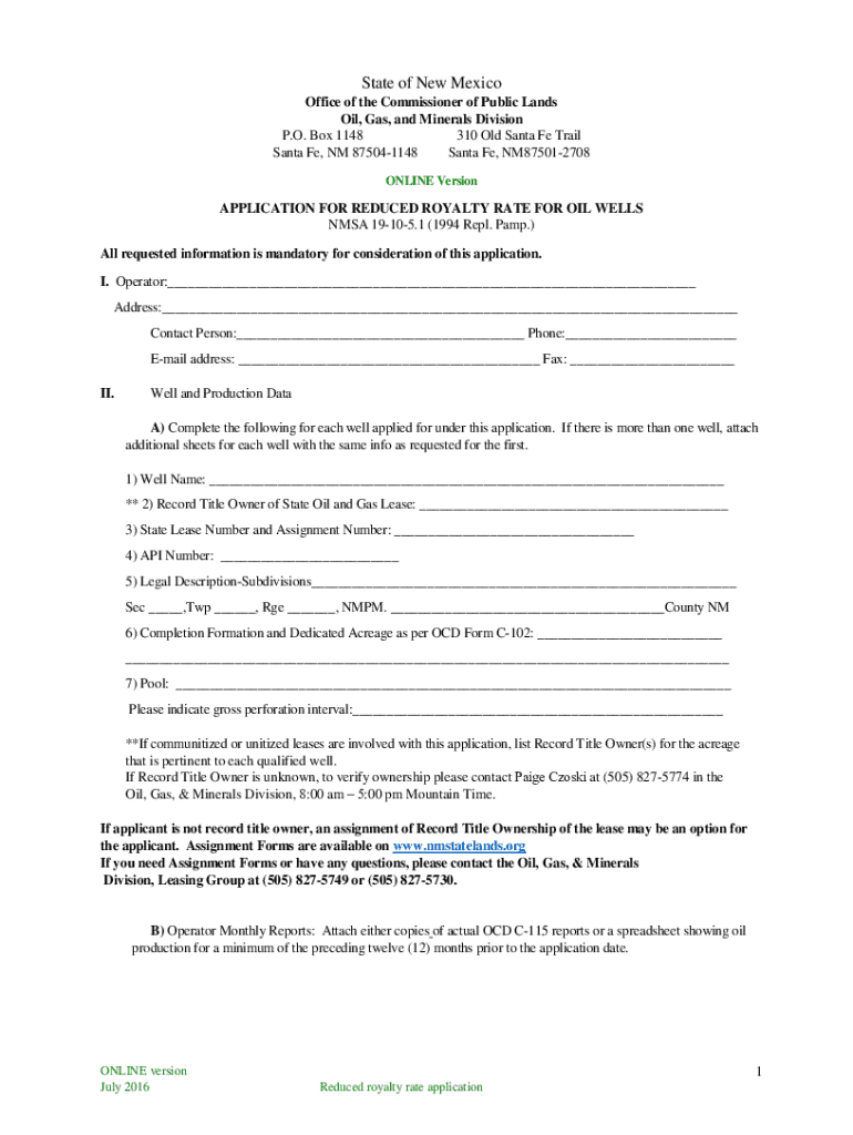 Get the free New Mexico State Land Office Commissioner of Public ...