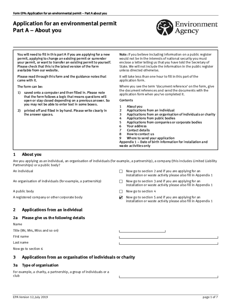 Form EPA: Application for an environmental permit Part A about application for an environmental permit Part A About YouGov will need to fill in this part A if you are applying for a new permit, applying