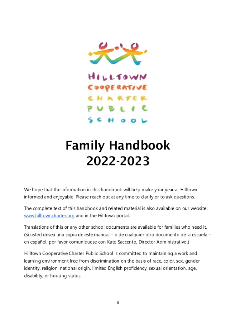 Family Handbook 20222023 We hope that the information in this handbook will help make your year at Hill town informed and enjoyable. Please reach out at any time to clarify or to ask questions. The