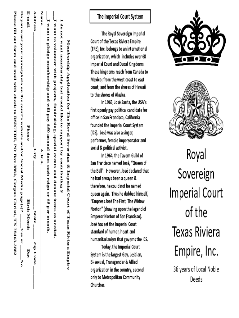 Membership Application for The Royal Sovereign & Imperial Court of Texas Riviera Empire___I do not want membership but would like to support by contributing $______I want to volunteer with projects,