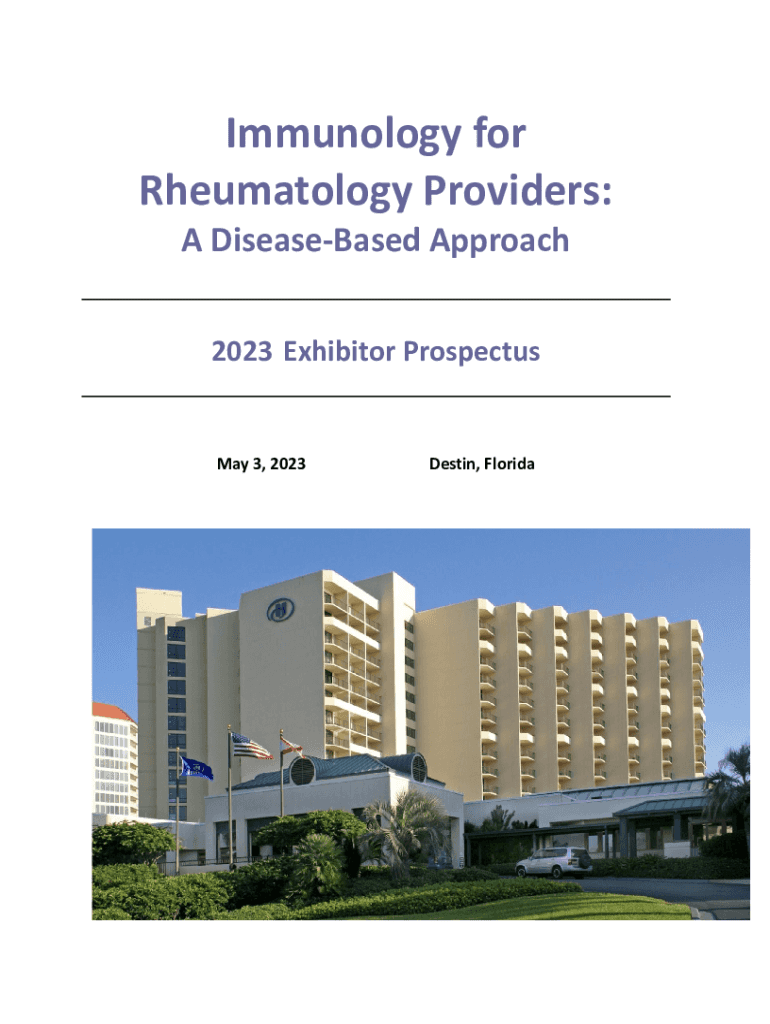 Immunology for Rheumatology Providers: A DiseaseBased Approach 2023 Exhibitor Prospectus May 3, 2023Destin, FloridaImmunology for the Rheumatology Provider: A DiseaseBased Approach Organizing Secretariat