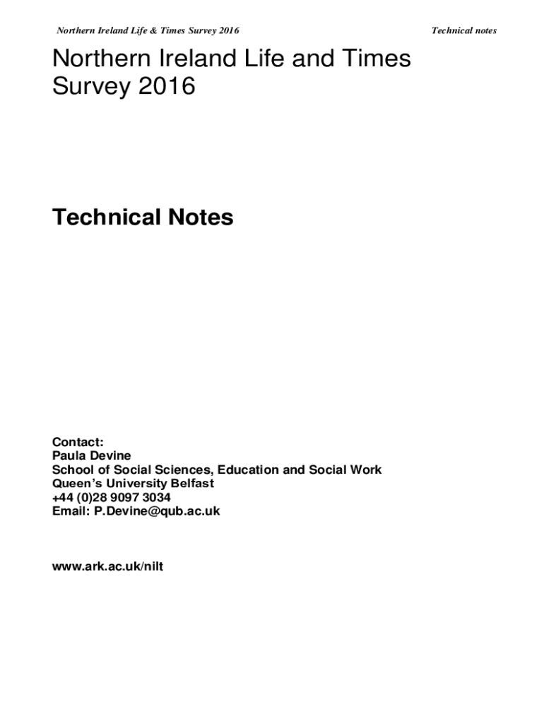 Northern Ireland Life & Times Survey 2016Northern Ireland Life and Times Survey 2016Technical Non-contact: Paula Devine School of Social Sciences, Education and Social Work Queen's University Belfast