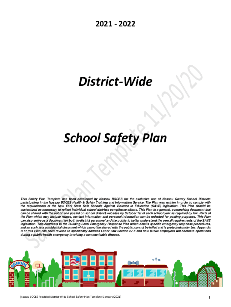 2021 2022DistrictWideSchool Safety Plan This Safety Plan Template has been developed by Nassau BONES for the exclusive use of Nassau County School Districts participating in the Nassau BONES Health