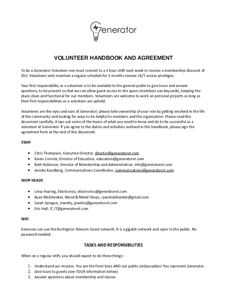 Fill out your volunteer handbook and agreement online with pdfFiller!