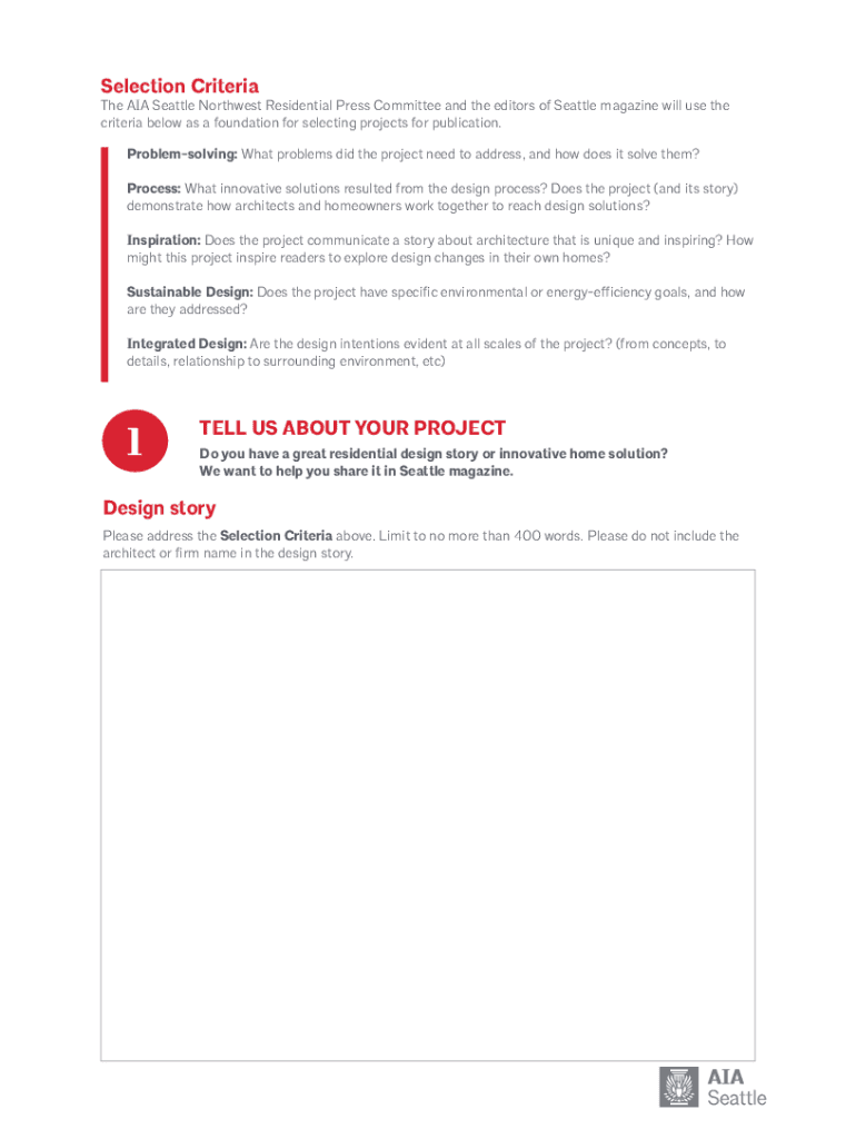 Information such as project description, photos or drawings, architect's bio, client testimonial, project budget, and any sustainability features must be reported on architecture awards and recognition.