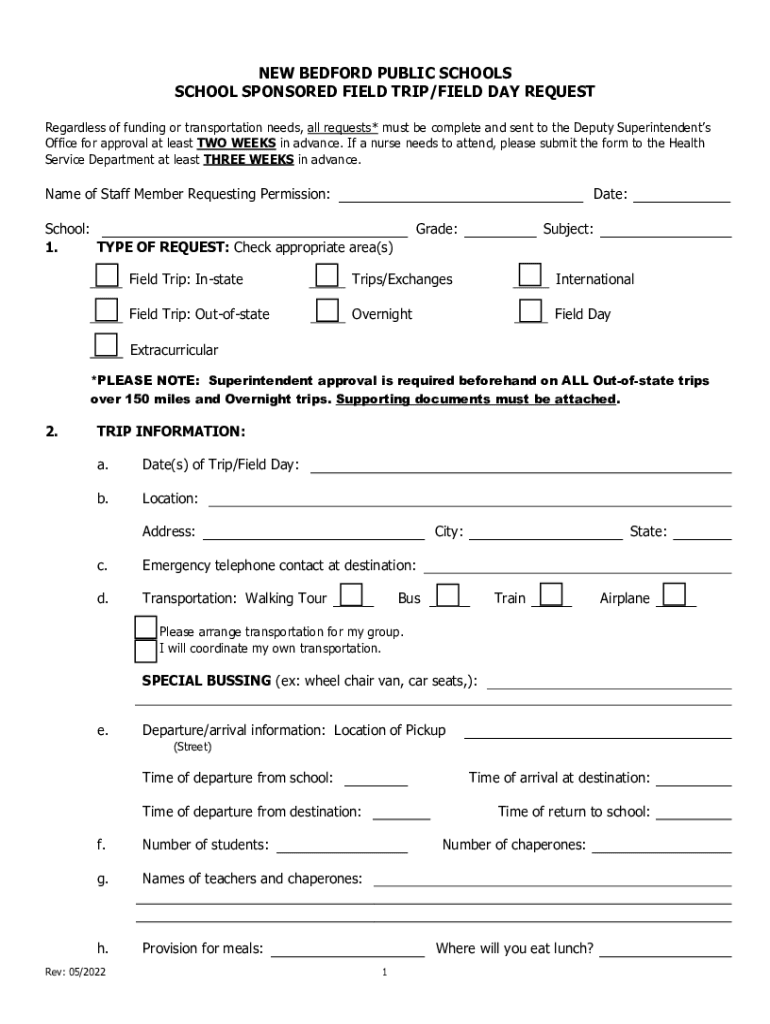 Get the free new bedford public schools school sponsored field trip/field ...