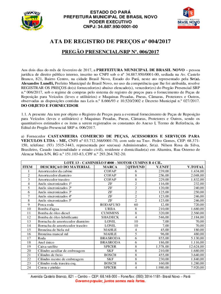 Obtenha o gratuito Aos dois dias do ms de fevereiro de 2017, a PREFEITURA MUNICIPAL DE BRASIL NOV...