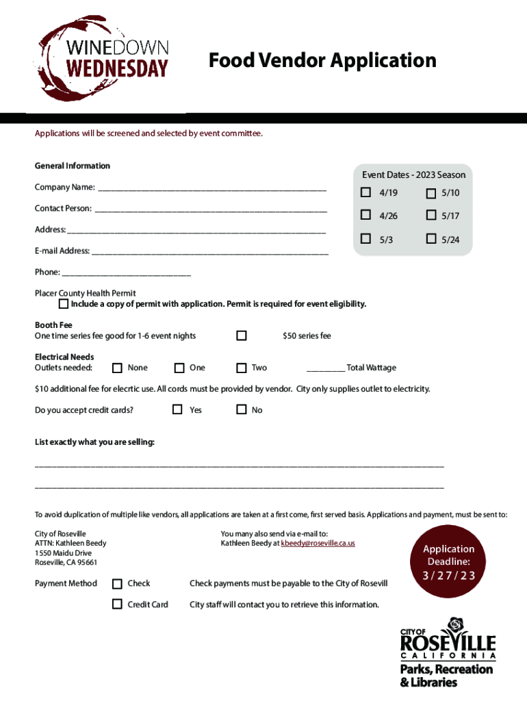 Food Vendor ApplicationApplications will be screened and selected by event committee.