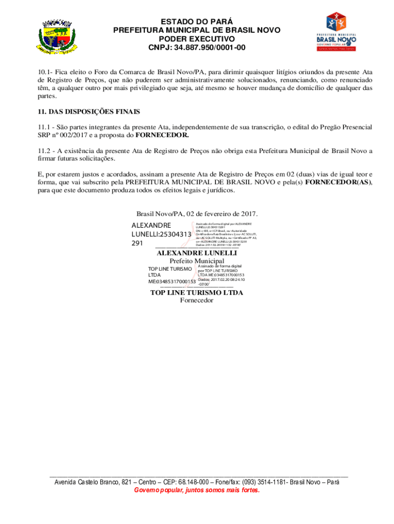 Obtenha o gratuito Aos 02 dias do ms de fevereiro de 2017, a PREFEITURA MUNICIPAL DE BRASIL, pess...