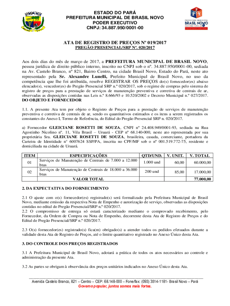 Obtenha o gratuito Aos dois dias do ms de maro de 2017, a PREFEITURA MUNICIPAL DE BRASIL NOVO,