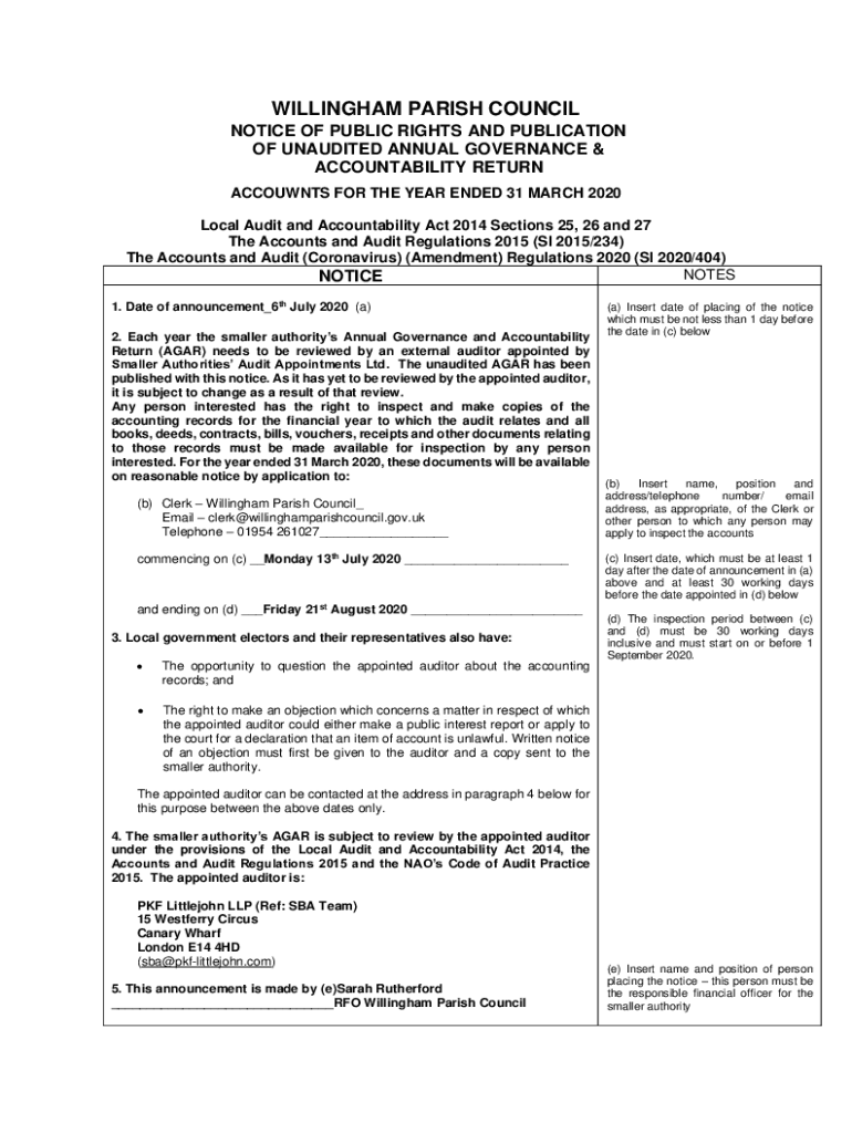 Get the free Notice of Public Rights & Publication of unaudited Annual ...