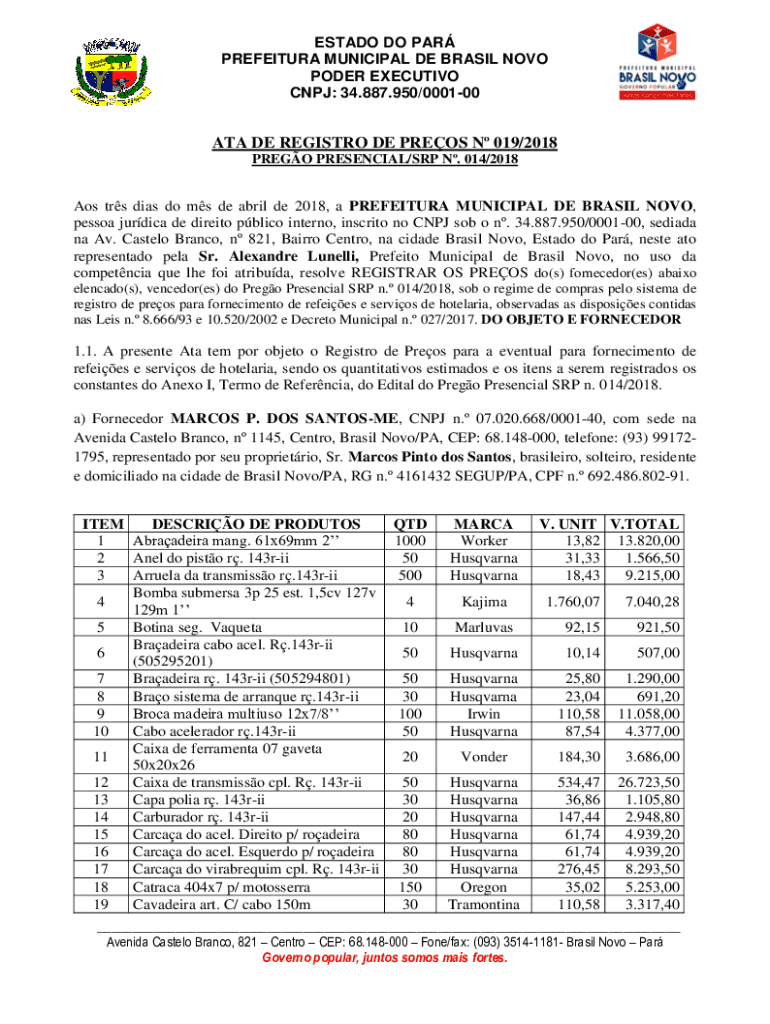 Obtenha o gratuito Aos trs dias do ms de abril de 2018, a PREFEITURA MUNICIPAL DE BRASIL NOVO,
