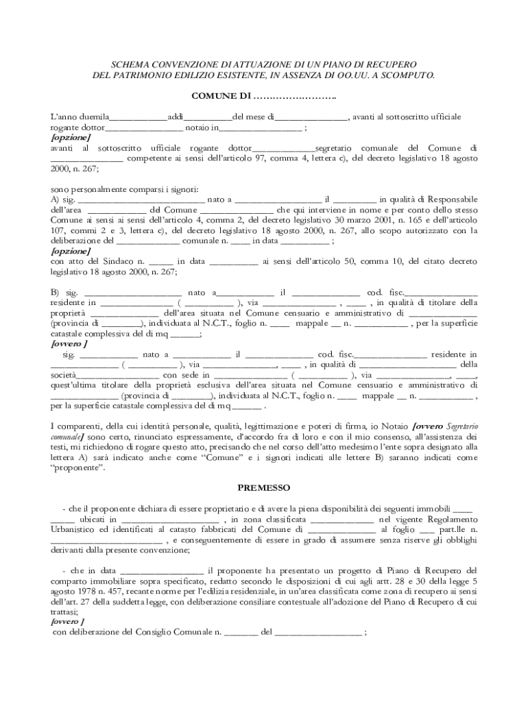 SCHEMA CONVENTION DI ACTUATION DI UN PIANO DI RECOVER