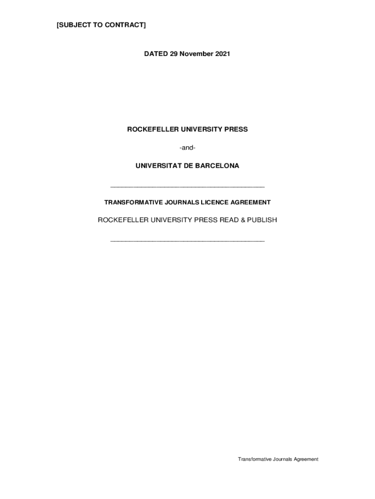 TRANSFORMATIVE JOURNALS License AGREEMENTROCKEFELLER UNIVERSITY PRESS READ & PUBLISH