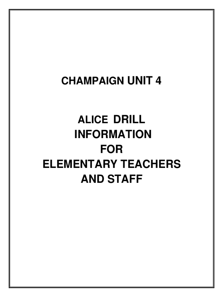 CHAMPAIGN UNIT 4ALICE DISINFORMATION FOR ELEMENTARY TEACHERS AND STAFF10 CONCEPTS OF ALICE FOR ELEMENTARY 1. Children should be taught to follow directions the first time they are given, in an emergency.