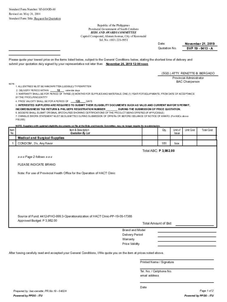 Standard Form Title: Request for Quotation