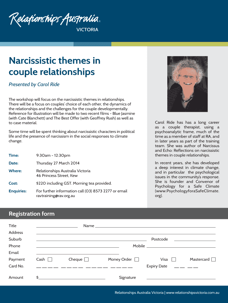Get the free Narcissistic themes in couple relationships - Relationships Australia ...