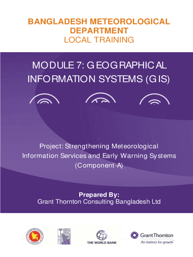 BANGLADESH METEOROLOGICAL DEPARTMENT LOCAL TRAININGMODULE 7: GEOGRAPHICAL INFORMATION SYSTEMS (GIS)Project: Strengthening Meteorological Information Services and Early Warning Systems (Component)Prepared