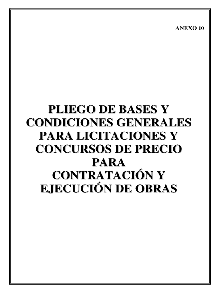 NEXT 10PLIEGO DE BASES Y CONDITIONS GENERALS PARA LIMITATIONS Y CONCUR SOS DE Précis PARA CONTRATACIN Y EXECUTION DE BRAS ND ICE PART I DISPOSITIONS PRELIMINARIES 1. Object Del Plain .............................................................................................................12.