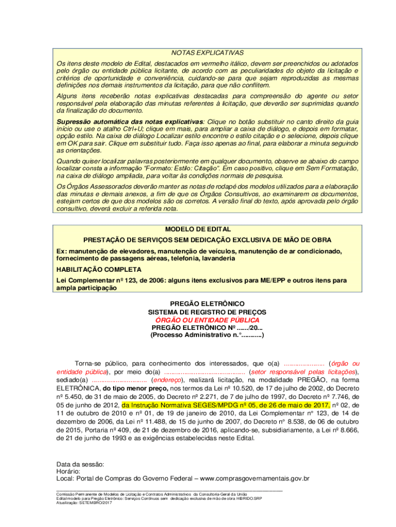 NOTES EXPLICATIONS Os items DESE model ode Edital, destacados em vermilion italics, deem SER preenchidos of avocados polo RGO of enfilade public licit ante, DE cord com as peculiarities do object