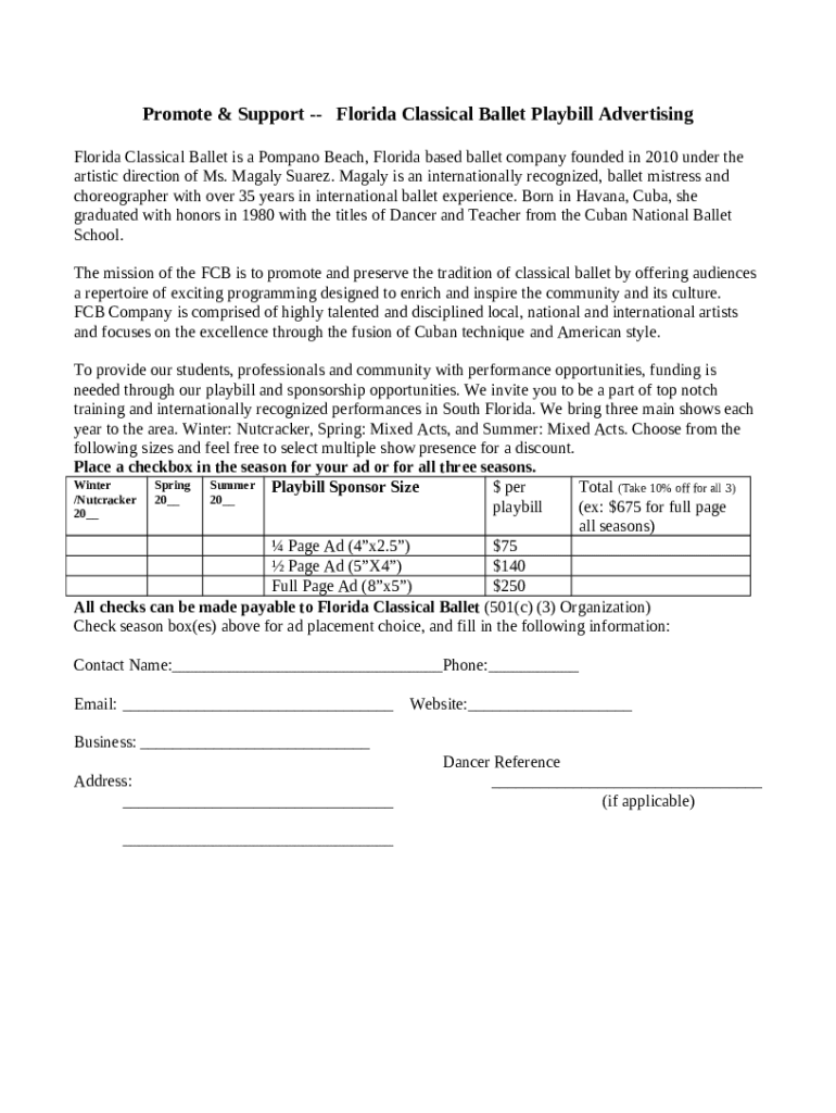 Frequently asked questions about the form Florida Classical Ballet Playbill Advertising