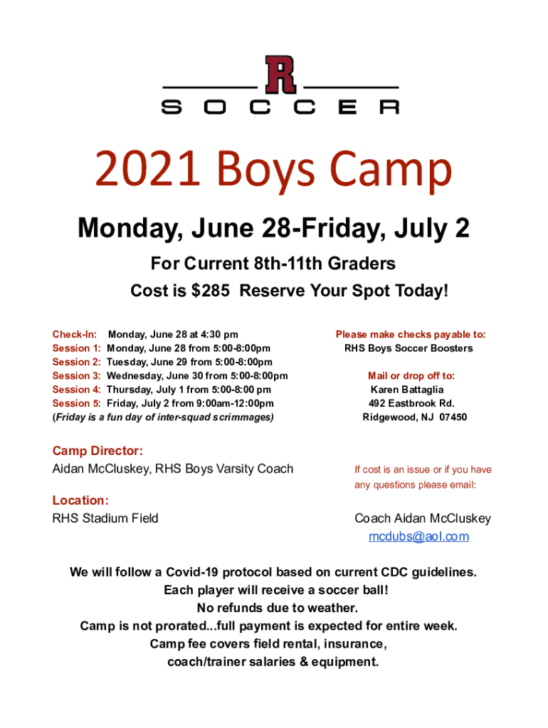 2021 Boys Camp Monday, June 28Friday, July 2 For Current 8th11th Graders Cost is $285 Reserve Your Spot Today! Checking: Monday, June 28 at 4:30 pm Session 1: Monday, June 28 from 5:008:00pm Session
