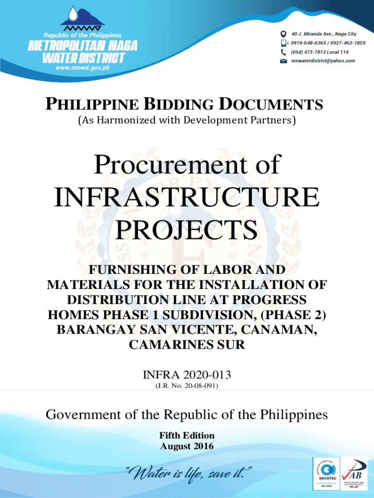 PHILIPPINE BIDDING DOCUMENTS (As Harmonized with Development Partners)Procurement of INFRASTRUCTURE PROJECTS FURNISHING OF LABOR AND MATERIALS FOR THE INSTALLATION OF DISTRIBUTION LINE AT PROGRESS