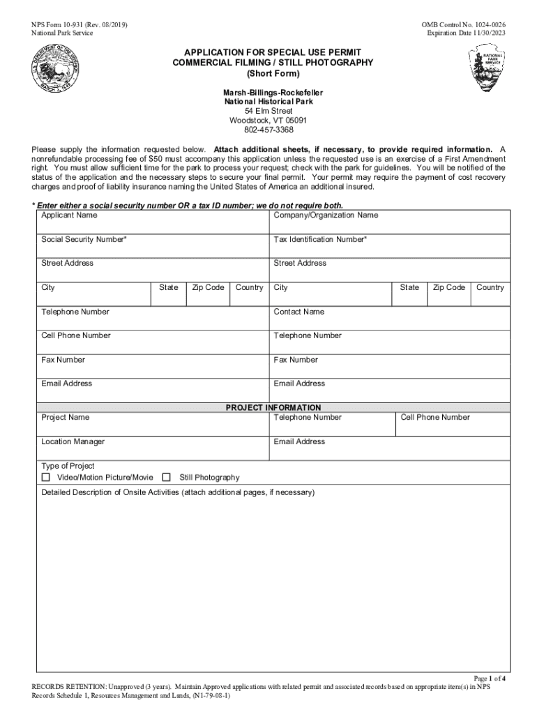 Get the free NPS Form 10-931 (Rev. 08/2019) OMB Control ...