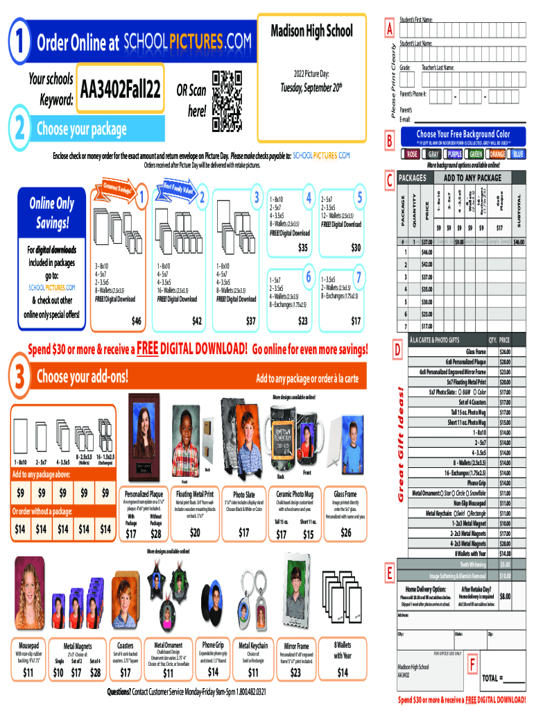 Choose Your Free Background Color** IF LEFT BLANK OR NO ORDER FORM IS COLLECTED, GREY WILL BE USED **ORANGE GRAY PURPLE GREEN More background options available online!3 8×10 4 5×7 2 3.5×5 8 Wallets