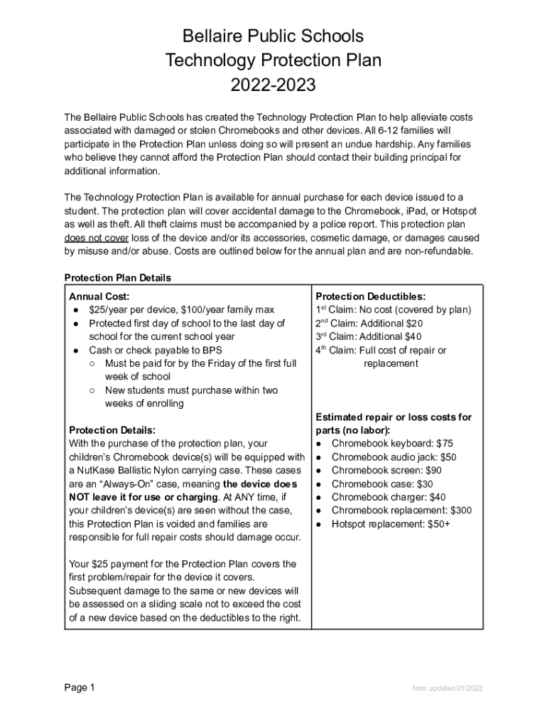 Bella's ire Public Schools Technology Protection Plan 20222023 The Bella ire Public Schools has created the Technology Protection Plan to help alleviate costs associated with damaged or stolen Chromebooks