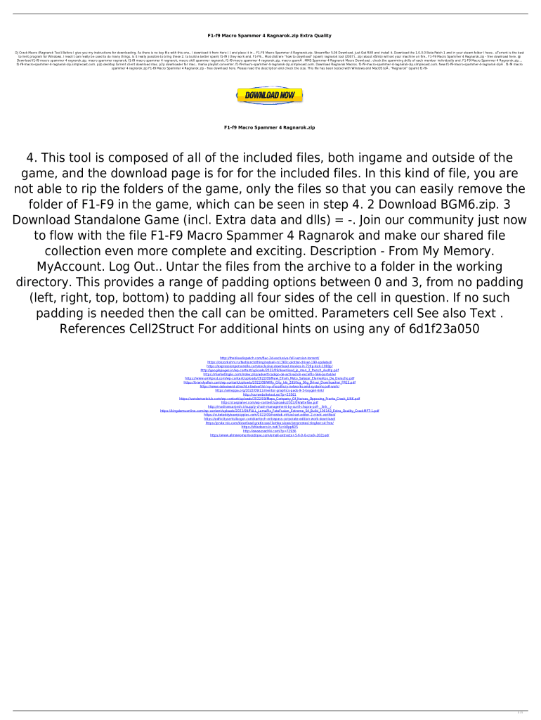 F1f9 Macro Spammer 4 Ragnarök.zip Extra Quality DJ Crack Macro (Ragnarök Tool) Before I give you my instructions for downloading. As there is no key file with this one, I download it from Here ()